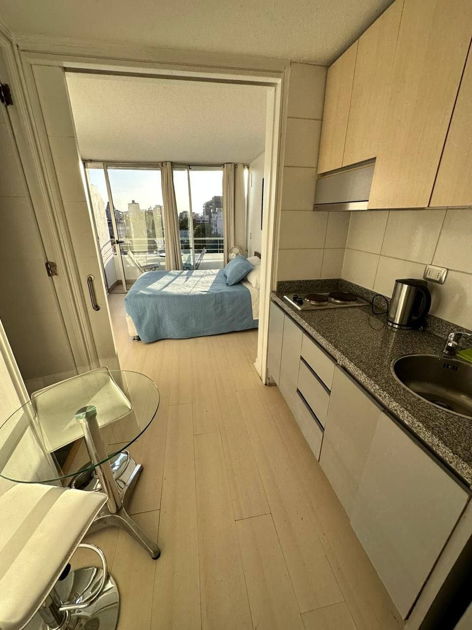 Красивый мини-дом, независимая крытая квартира в центре всего необходимого для прекрасного отдыха, расположенная в 1 квартале от центра Костанера, в окружении очень развлекательных ресторанов и баров. В двух кварталах от метро Los Leones или Tobalaba. Отличное транспортное сообщение. НЕТ ПАРКОВКИ, НЕТ ЛИФТА. В квартире 1 комната: — С КОНДИЦИОНЕРОМ. — 2-местная кровать; — диван-кровать того же размера. — 1 складной стол; — 1 небольшая ванная комната с душем. - электроплита;