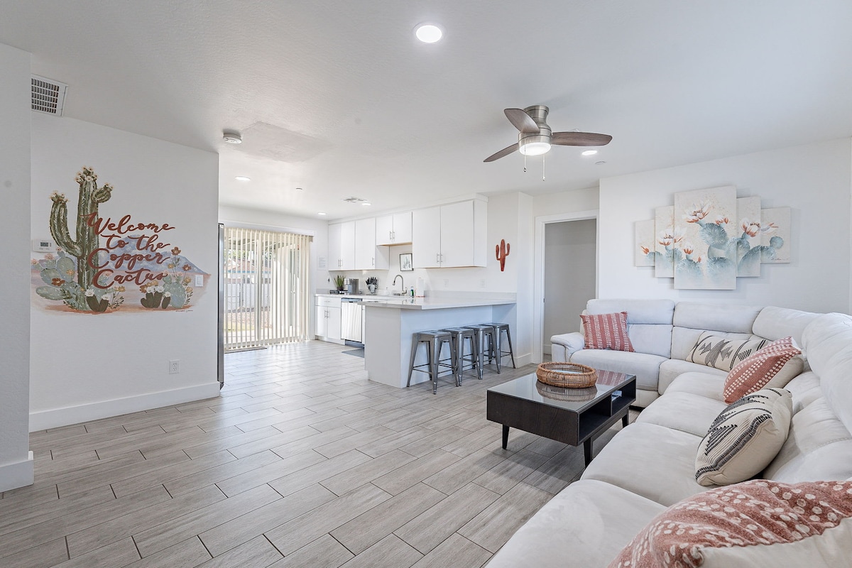 🌵 Perfect Location – Walk to Old Town bars, shops & dining 🚎 Easy Transport – Free trolley stop nearby ☀️ Private Backyard – Fenced, perfect for dogs 🛏 Room to Unwind – 2 bedrooms, 2 lounges & stylish décor 🍽 Stocked Kitchen – Cook & dine with ease ⛰ Explore AZ – Near Camelback, Papago, Golf & Bike Path 🚗 Hassle-Free Parking – Driveway fits 4 cars Our friendly neighborhood offers local charm, safety, and easy access to Old Town’s restaurants, shops & nightlife.