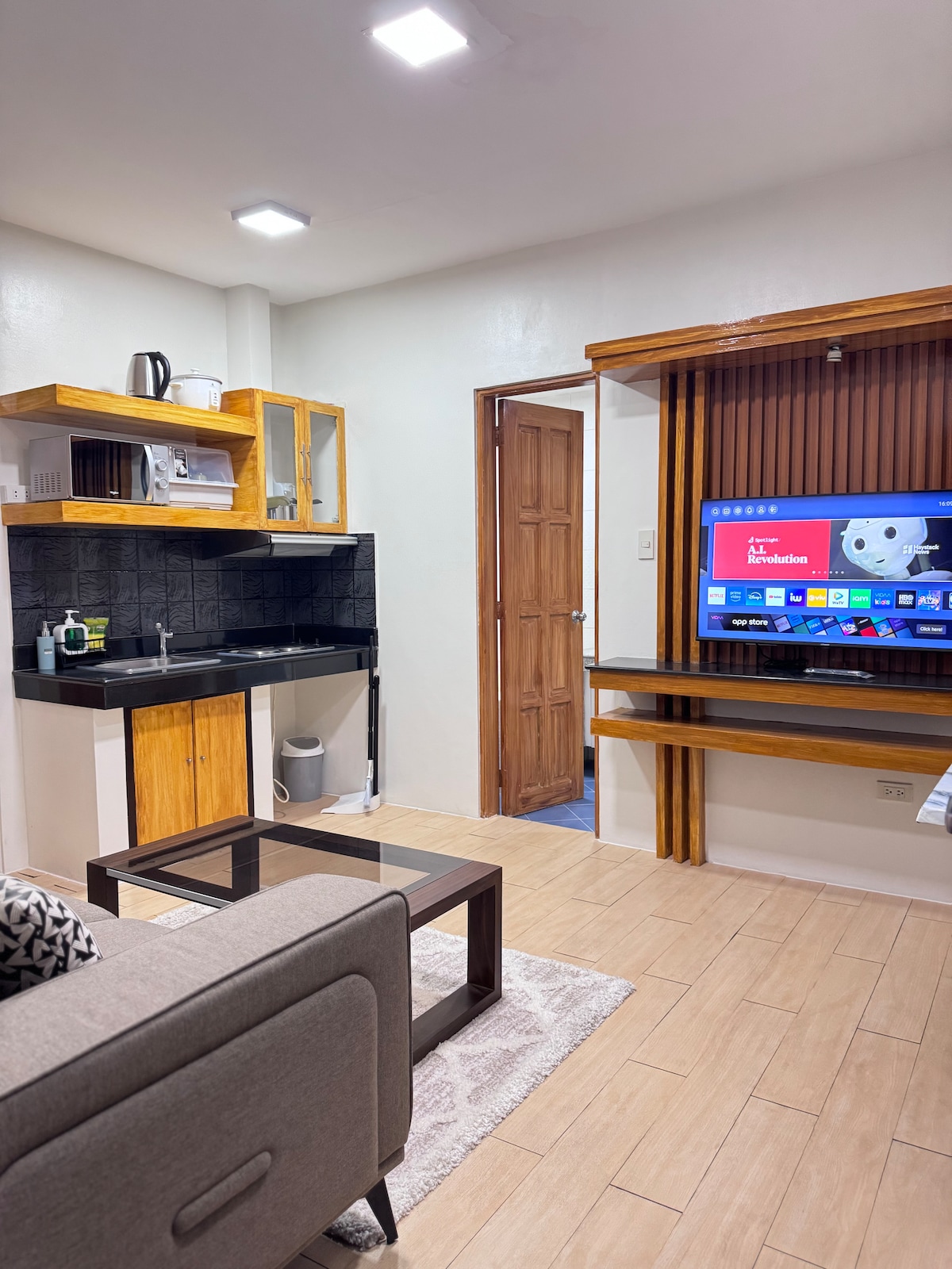 ✅ Smart home Google device command ✅ Welcome treats ✅ FREE parking ✅ Wifi ✅ Android Smart TV ✅ Air-condition ✅ Hot and cold shower ✅ Complete Kitchen and Dining Ware ✅ With Dining table and chairs ✅ Towel for each guest ✅ Smart mirror ✅ Bidet ✅ Shampoo and Body wash ✅ Tooth brush and toothpaste ✅ Toilet Paper ✅ Clean and Comfy bed, pillows and blanket ✅ Hangers ✅ Bed table ✅ Indoor Slippers ✅ Cove lights ✅ Flat Iron by request