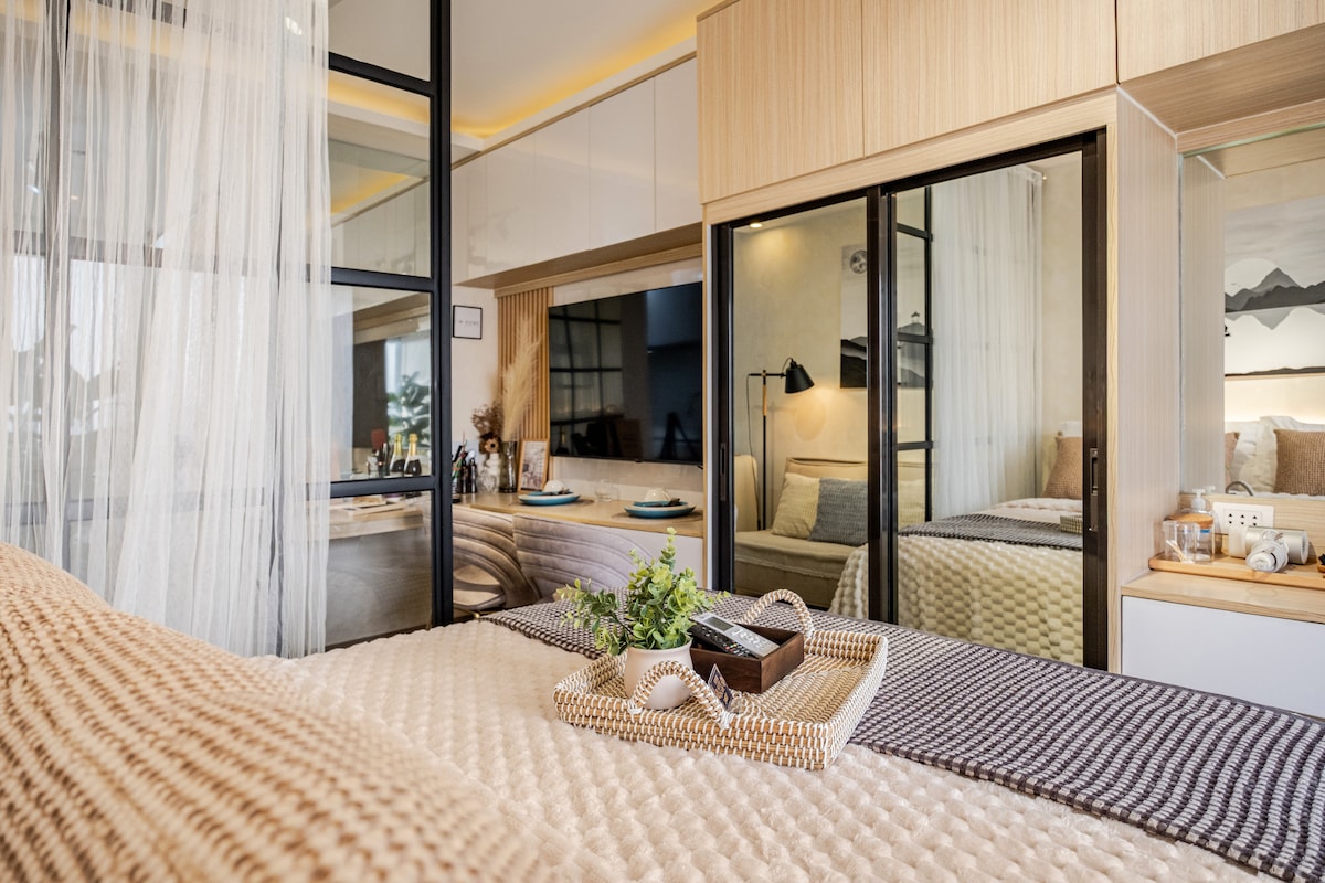 Остановитесь в стильном городском лофте, оформленном в теплом индустриальном стиле. Современная студия: Открытая кухня Уютная гостиная с 55-дюймовым телевизором с Netflix. Лофт с рабочим местом Большой диван-кровать, раскладывающийся в кровать размера King size. Балкон с видом на город. Всего в 5 минутах ходьбы от SM Marilao 10 минут от выезда NLEX Meycauayan. 15 минут от Филиппинской арены. Идеально подходит для одиночных путешественников, пар или небольшой семьи, ищущих компактный, но продуманный отдых или отдых @CX Nook