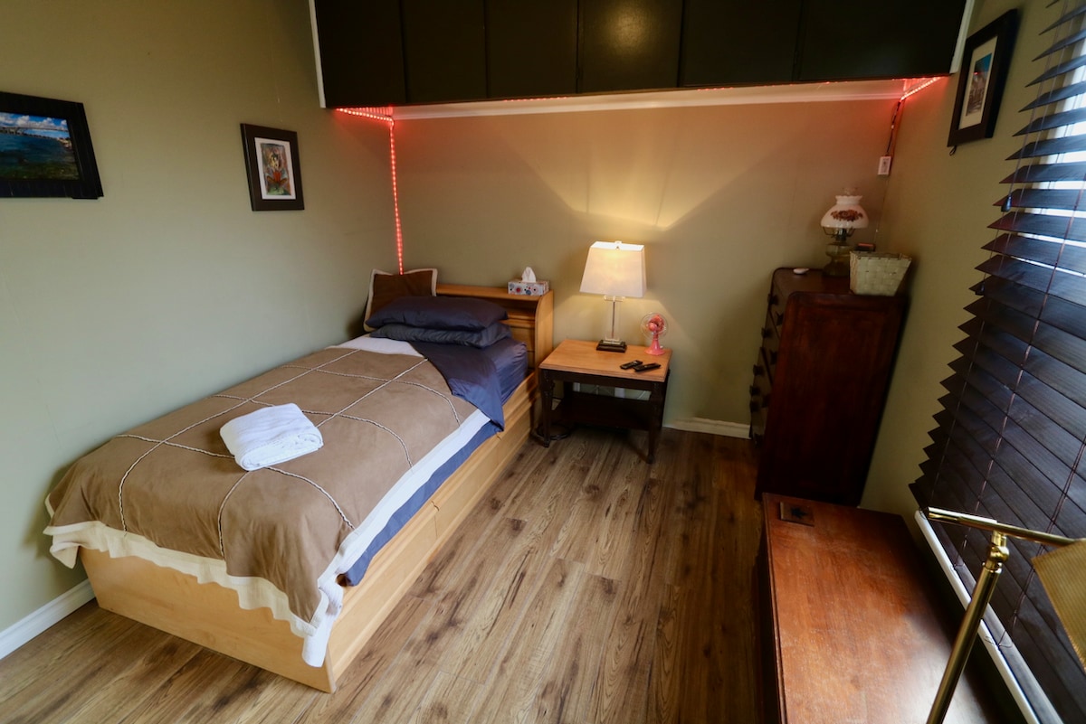 Добро пожаловать в нашу очаровательную квартиру-студию в подвале. Квартира находится в нескольких минутах ходьбы от центра Сарнии и красивого залива. Отдельный вход с кнопочной панелью для вашего удобства. Также есть небольшая мини-кухня для тех, кто хочет остановиться на несколько дней.