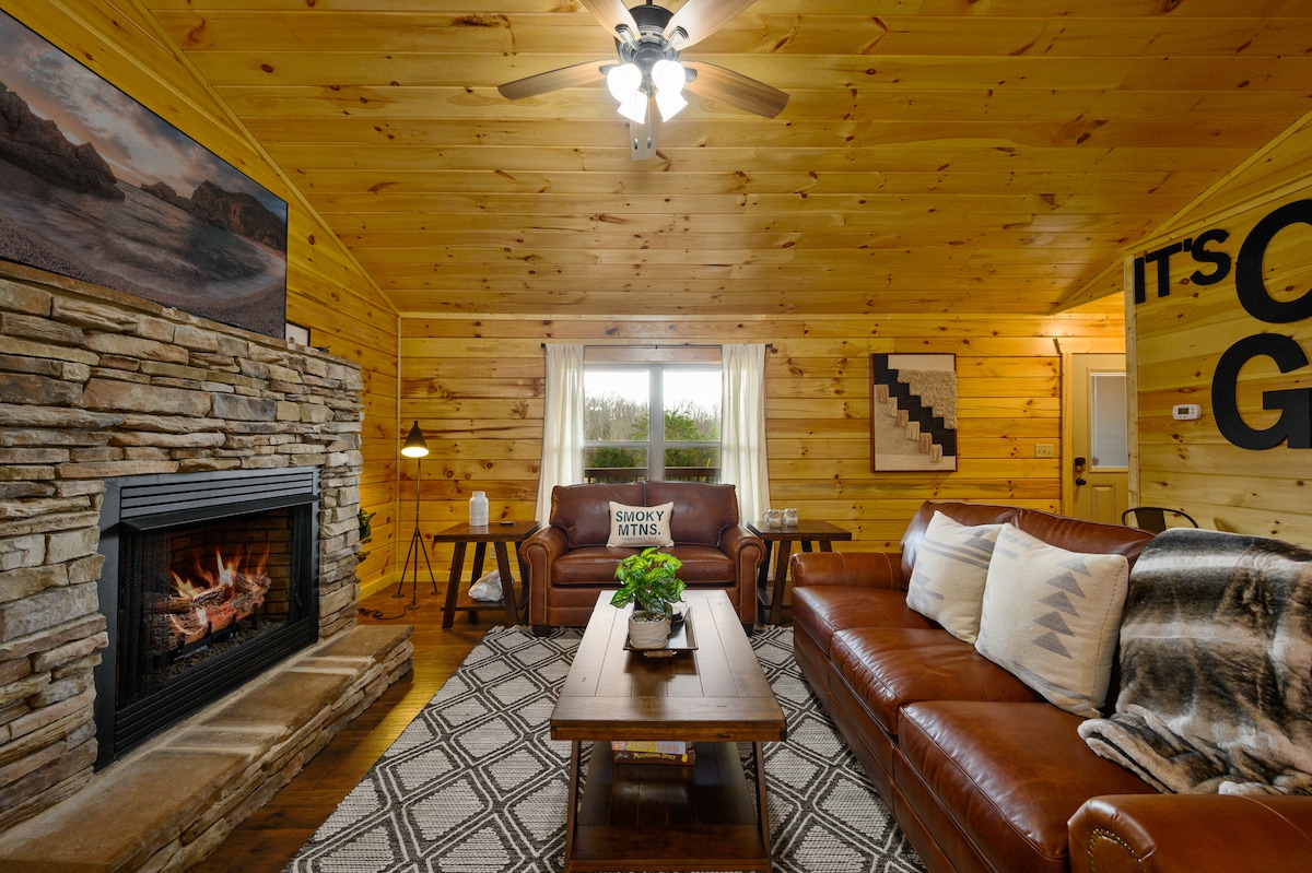 Private Master Suite • Minutes to Dollywood Escape to a cozy cabin close to all the action, yet peaceful enough to truly unwind. Enjoy relaxing mornings on the front porch, evenings by the fireplace, and the comfort of a private master suite with its own ensuite bathroom, perfect for couples or small families seeking both convenience and quiet. • 8.5 miles - Dollywood • 6.9 miles - The Island in Pigeon Forge • Minutes - downtown Sevierville • 17 miles - downtown Gatlinburg Adventure is nearby.