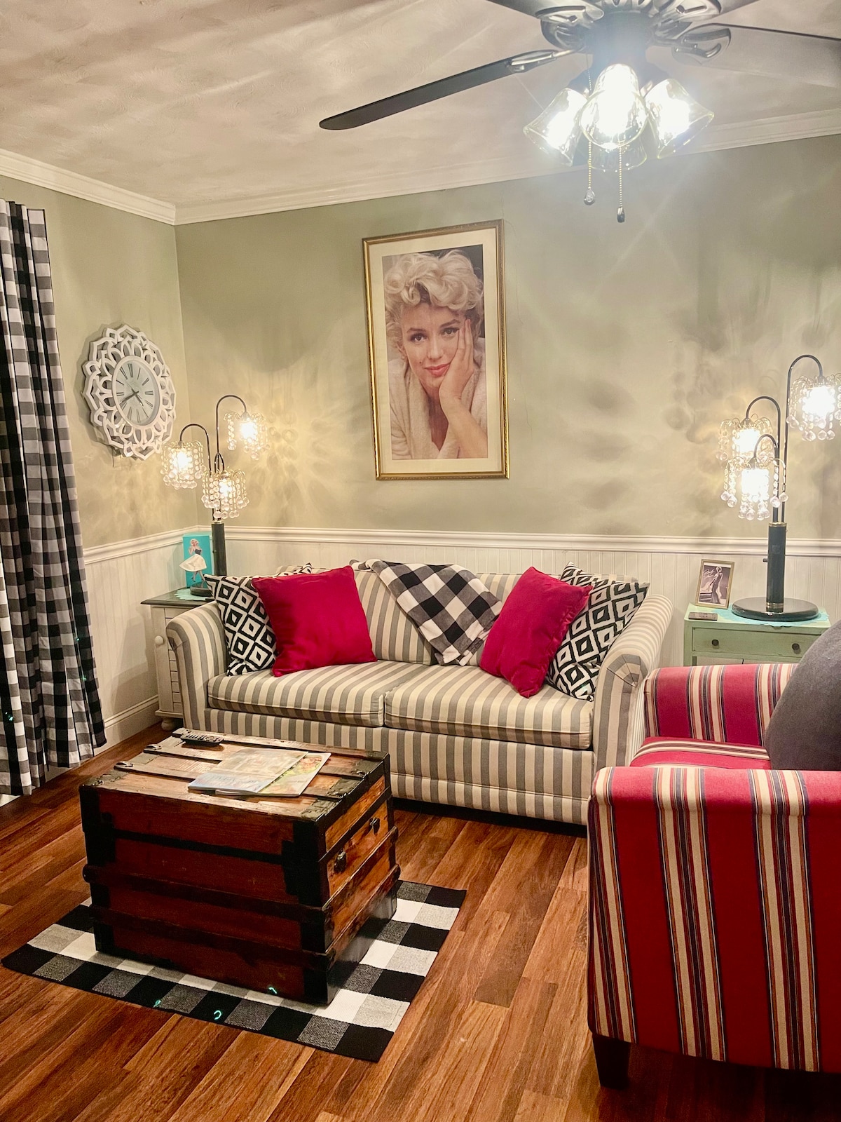 Недавно отремонтированная квартира менее чем в одной миле от задних ворот базы ВВС Шоу. Вы можете найти расслабляющее пространство, когда посетите PCS Sumter SC. Эта причудливая квартира сопоставима по размеру с однокомнатным люксом в отелях с кроватью размера Queen size в комнате и футоном на кухне. Бонус — стиральная и сушильная машины в вашем личном пространстве. Предоставляются Wi-Fi, телевизор ROKU, кофе и чай, полностью оборудованная кухня, прачечная и душ. В жилье есть наружные камеры.
