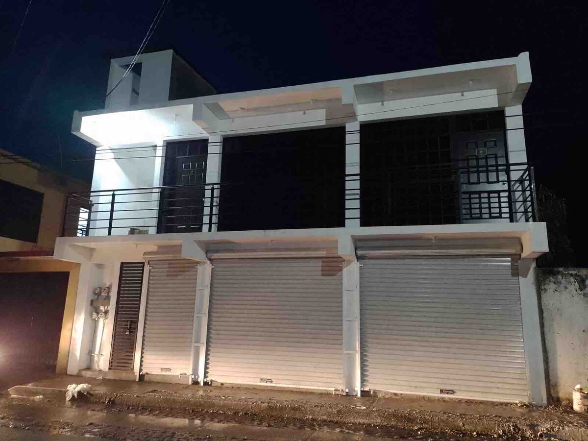 Хорошая квартира-лофт, частный кондиционер, от 1 до 6 гостей . К услугам гостей Интернет, мини-кухня, столовая, ванная комната с горячей водой. 2 двуспальные кровати, 1 диван-кровать, телевизор Smart TV, стиральная машина и парковка внутри удобств. мы внутри; - 5 минут от площади Кристар. - в 10 минутах от галерей Пласа, - 20 минут от аэропорта,. - 10 минут езды от центра Тапачулы. - 15 минут до центрального автобуса. - 15 минут до площади Мариачи.