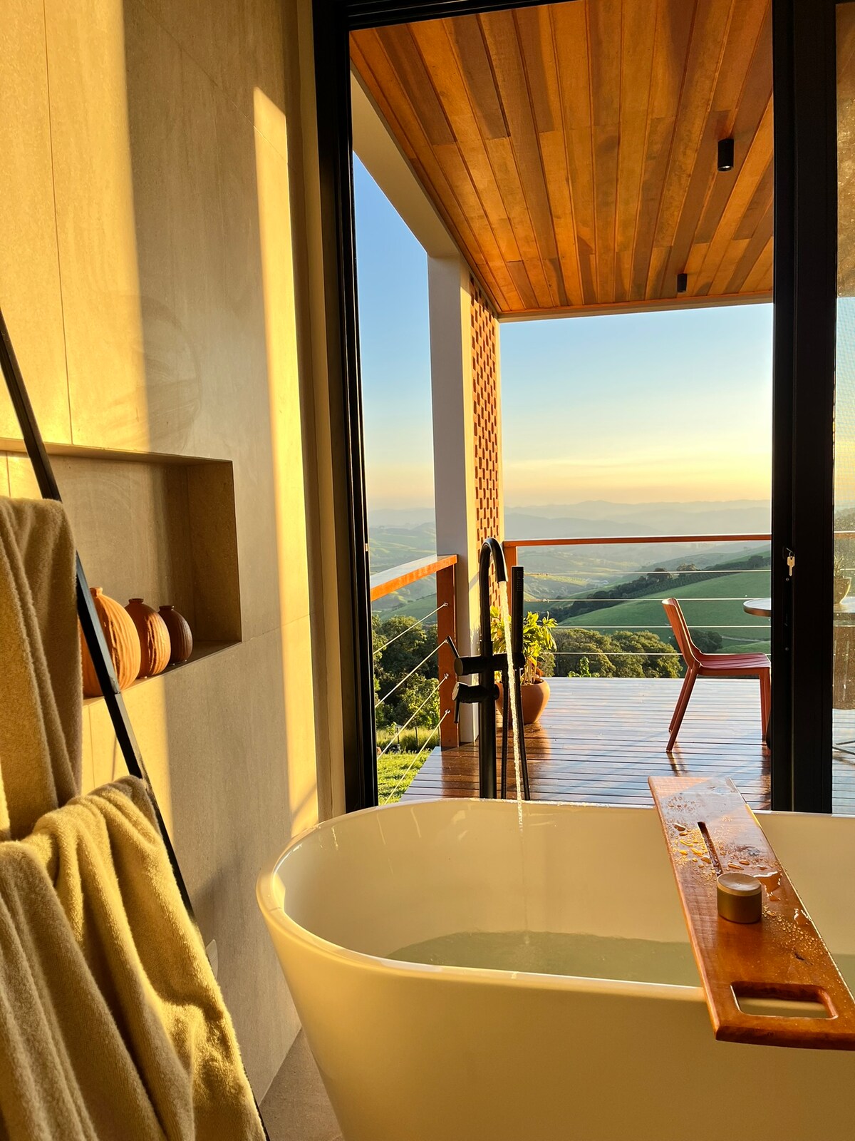 Романтический отдых на лоне природы, идеально подходит для пар. Шале в швейцарском стиле (A-frame) на ранчо в окружении кофейных плантаций, с собственной рекой и водопадом. К услугам гостей открытые ванны с видом на Серра-да-Мантикейра, джакузи в помещении, костровище, барбекю, пляжный теннисный корт, кровать-качели, сухая сауна с видом и проектор в помещении со 100-дюймовым экраном.
