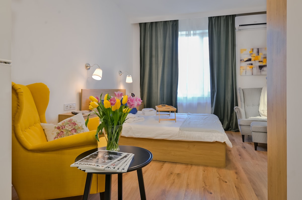 Эта тихая, романтическая квартира в историческом центре Софии кажется настоящим домом. Из окон открывается вид на гору Витоша. До таких достопримечательностей, как собор, крытый рынок и бульвар Витоша, можно дойти пешком. Идеально подходит для пар, одиночных путешественников или удаленных работников. Продуманный дизайн, качественное постельное белье, быстрый Wi-Fi, полноценная кухня и книги, которые приглашают вас расслабиться.