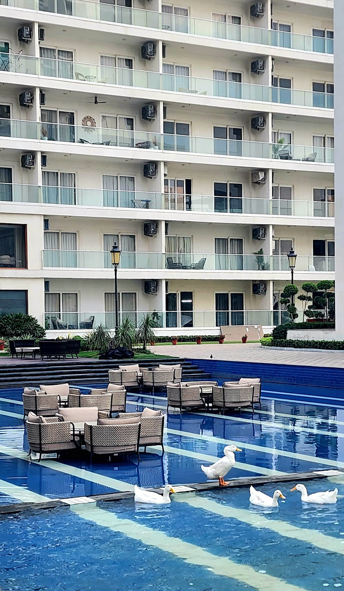 Enjoy the Swimming Pool and Sun Bath With with the whole family and Friends at this stylish place. Luxury apartment with sunrise and waterfront views in Central Park flower valley, Sohna. This property has been rated the best in the NCR for 5 years in a row. Come here for a peaceful and luxurious stay and enjoy the amenities.