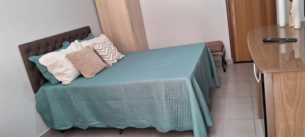 Расслабьтесь всей семьей в этом тихом жилье. Квартира-студия недалеко от Священной горы, Праинья-ди-Минас, в 5 минутах езды от Parque das Águas и центра города. Уютная студия с телевизором, плитой, холодильником, кофеваркой и различной посудой для приготовления еды или закусок. Тихая, просторная и хорошо расположенная. Вашей семье понравится 🥰 У нас нет гаража, но ваш автомобиль можно припарковать перед кондоминиумом, в котором есть камеры.