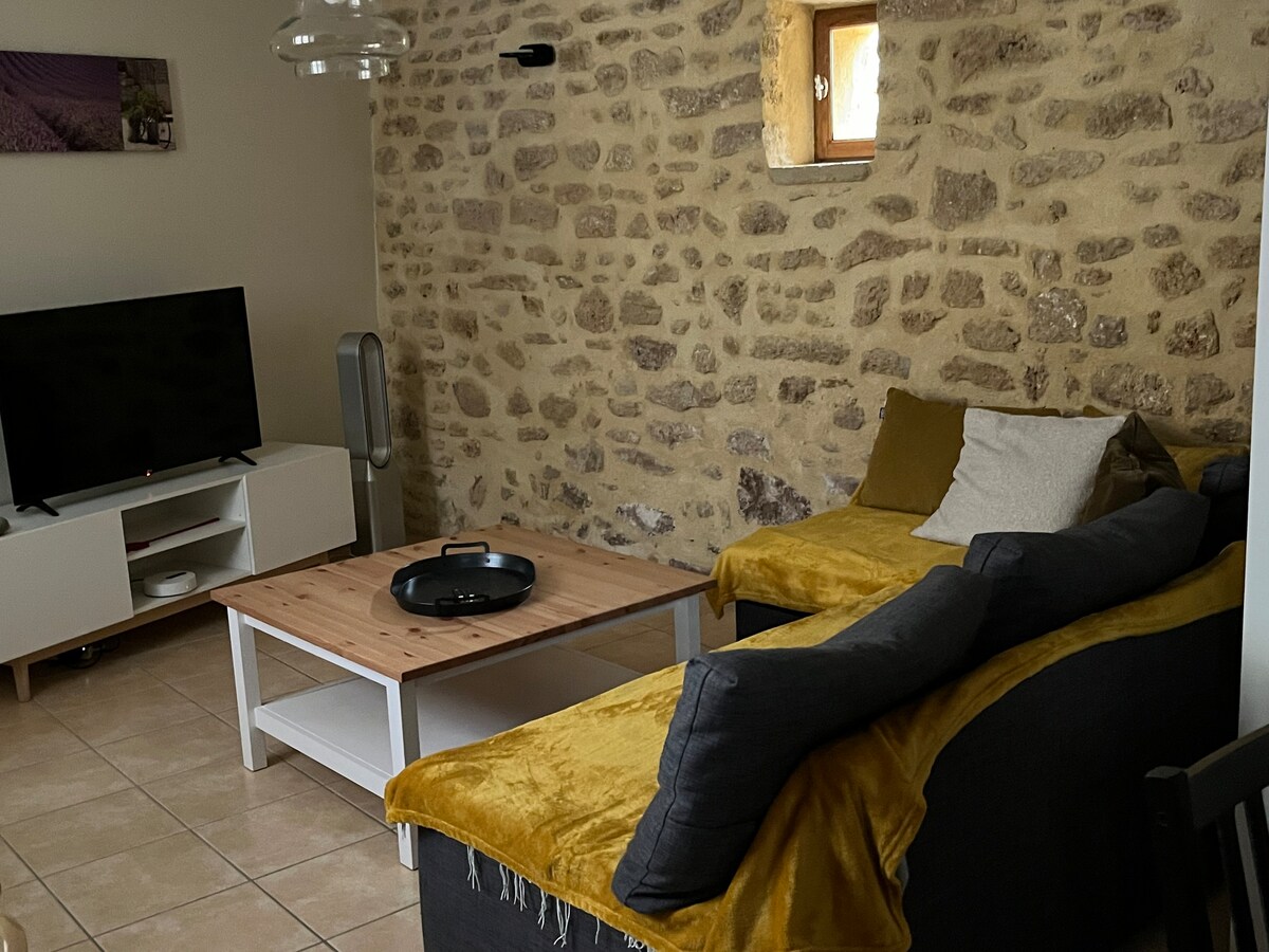 Коттедж " Les Pierres Hautes " является отдельным жильем, примыкающим к нашему дому : старый отремонтированный каменный сарай. Зеленая среда тихая : на территории есть лавандовое поле, а также более 50 оливковых деревьев. Наружная лестница обеспечивает доступ к воротам. Для вашего комфорта : Постель сделаны по прибытии, мы предоставляем полотенца, а также практические продукты, такие как соль, перец, масло....