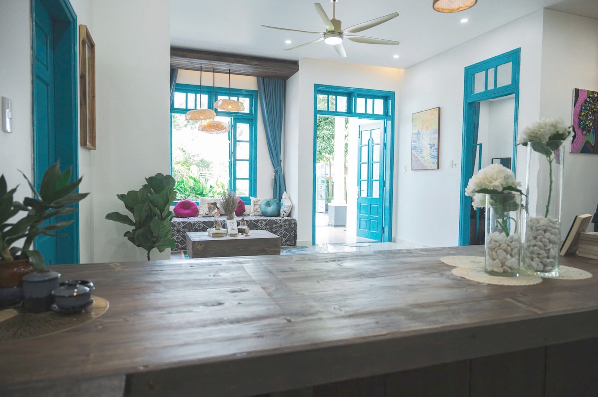 Минималистский стиль, расслабление, просторное жилье для больших групп (6–12). — Лучшее жилье Airbnb в Дананге. - До пляжа можно дойти пешком всего в 3минутах ходьбы. — Очень близко к центру города: всего 5 минут на Grab. — Аэропорт: всего 12 минут на машине. — Удобные магазины, кофейни, спа-салоны, рестораны морепродуктов и знаменитые рестораны находятся в 5 минутах ходьбы. — 5-звездочная спальня, ванная комната: постельное белье, белье, халат и полотенце. — Полностью оборудованная кухня с прекрасным большим обеденным — Гостиная просторная и роскошная с 50-дюймовым смарт-телевизором — Кондиционер во всех помещениях: гостиная, спальня.
