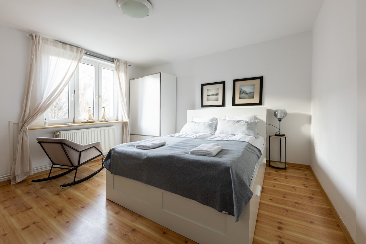 Эта полностью меблированная и уютная квартира идеально подходит для отдыха в Сопоте. Моя светлая квартира-лофт с 2 спальнями расположена на верхнем (3-м) этаже отреставрированного исторического здания, расположенного в центре на тихой улице всего в нескольких секундах от пляжа! Обратите внимание, что до квартиры можно добраться только по лестнице. Гараж для одного автомобиля обычного размера доступен исключительно для гостей. Обратите внимание: фургоны, негабаритные транспортные средства или грузовики не поместятся в гараже.