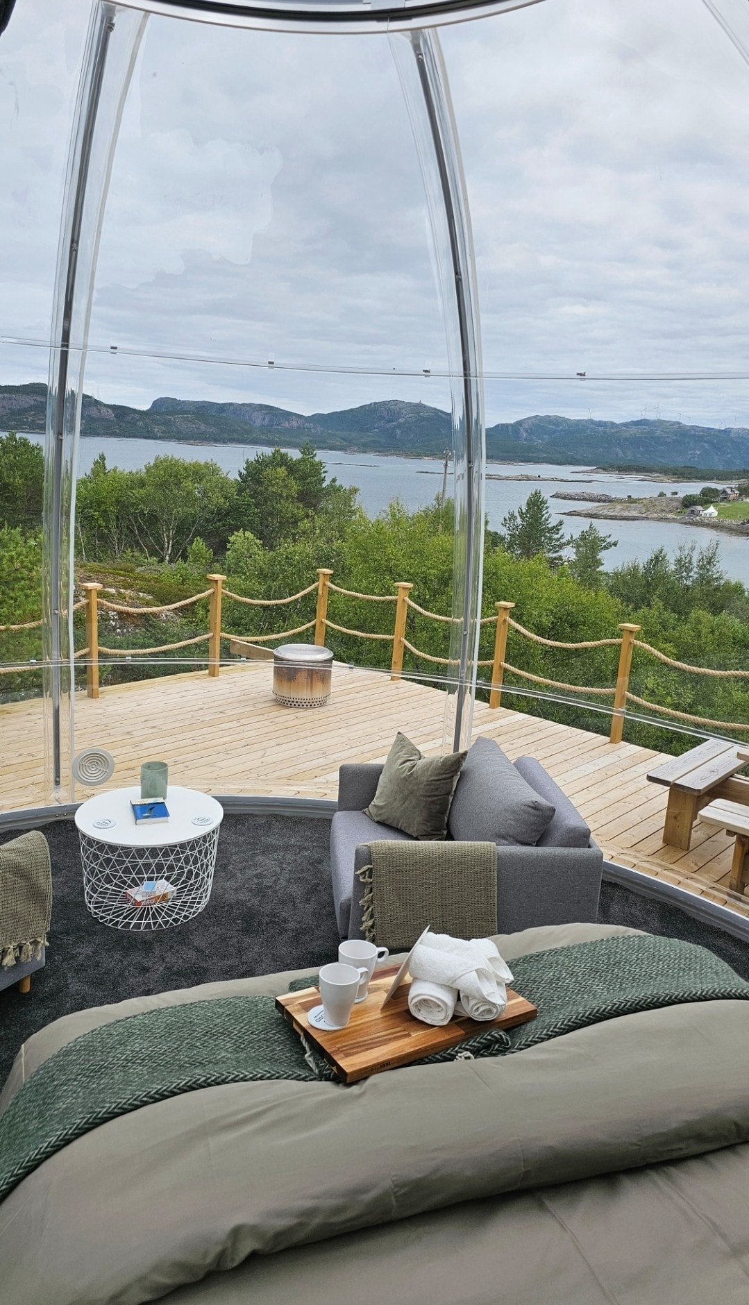 Стеклянный иглу, красиво расположенный у океана Трёнделаг, Хеллландсёен. В солнечные дни вы будете наслаждаться удивительным закатом с иглу, ложиться спать в пуховых одеялах с египетским хлопком и спать под «открытым небом». Проснитесь с пением птиц, совершите утреннюю поездку по океану на каяке или SUP-досках (входит в стоимость проживания). Принесите свой собственный обед на популярную гору «Vågfjellet», и наслаждайтесь потрясающим видом. Познакомьтесь с альпаками на нашей ферме на обратном пути в Иглу!