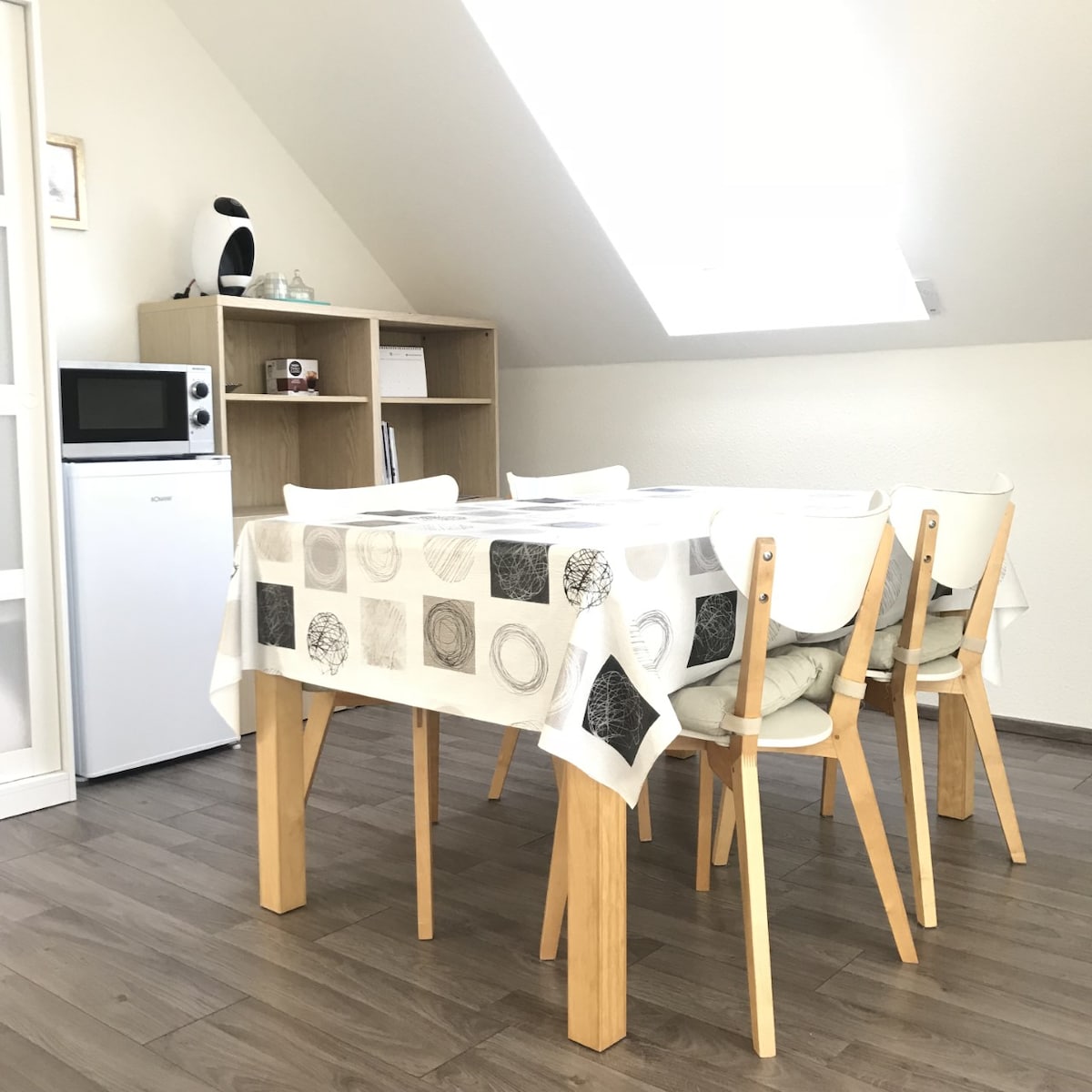 Ruhig gelegenes modernes Einzimmerappartement mit Tageslichtbad, Pkw-Stellplatz und Terrasse -neu saniert- Kleine Wohneinheit ( 3 Wohnungen) ***schnelles Internet *** —Als „homeoffice“ geeignet— Voll möbliert und eingerichtet. Handtücher und Bettwäsche vorhanden. Alle Nebenkosten enthalten ( außer den hier als „optional“ aufgeführten): Optional: —Mitbenutzung der Ladesäule für e-Auto —Mitbenutzung von Waschmaschine und Trockner. —Rauchgelegenheit im Freien