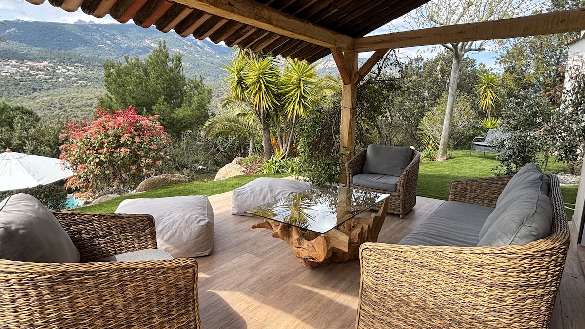 🌿 U Cantonu di l 'Arti – Вилла с бассейном с подогревом и видом на горы, расположенная в Сотте 🌄 Вилла U Cantonu di l 'Arti расположена в нетронутой природной среде. Современная архитектура идеально сочетается с дикой красотой корсиканского пейзажа. Эта вилла, спроектированная так, чтобы гармонично вписаться в окружающую растительность и скалы, приглашает вас насладиться изысканным отдыхом, сочетающим комфорт, спокойствие и потрясающие виды. БАССЕЙН ЗАКРЫТ С 1 ДЕКАБРЯ ПО 1 АПРЕЛЯ.