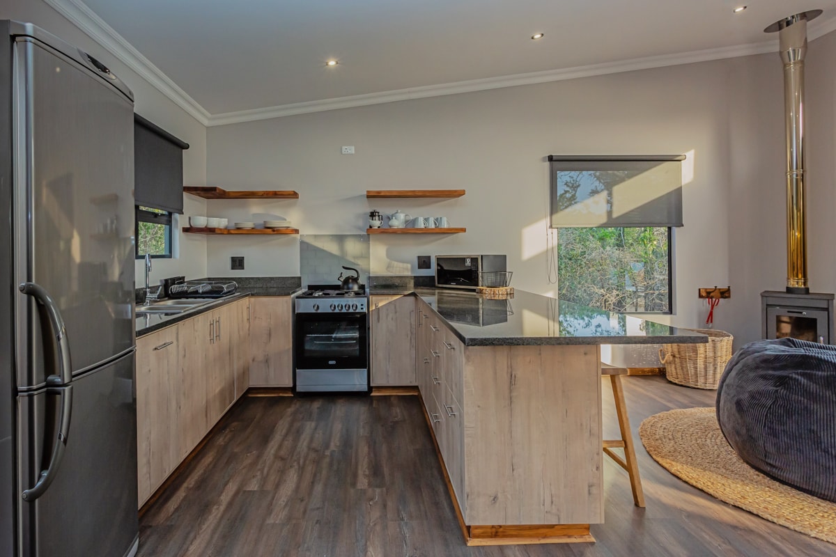 Tin Shack — это красивый контейнерный домик, расположенный на холме за городом Святой Елены на западном побережье. Из домика открывается вид на весь залив с величественными горами Седерберг вдали. Здесь есть две спальни с ванными комнатами, в каждой из которых есть душ, раковина и биотуалет. Просторная кухня/гостиная открытой планировки оснащена чугунным дровяным камином, который делает домик теплым и уютным даже зимой. На просторной террасе есть барбекю Weber, зона отдыха на открытом воздухе и джакузи на дровах.
