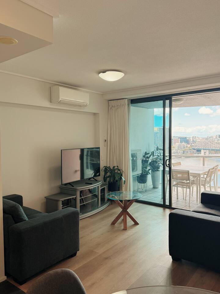 Наша потрясающая квартира с видом на реку и ботанический сад с одной спальней идеально подходит для краткосрочного и долгосрочного проживания. Здание SkyTower в Брисбене расположено во внутреннем центральном деловом районе. К услугам гостей: - Просторная спальня с двуспальной кровать размера King size и встроенным шкафом. Предоставляются свежие полотенца и постельное белье. - Диван-кровать в гостиной. - Центральный кондиционер - газовая плита с полностью оборудованной кухней шеф-повара. - Выйдите из прачечной. - Стиральная машина и сушилка - Кофемашина - Smart TV - бесплатный WI-FI;