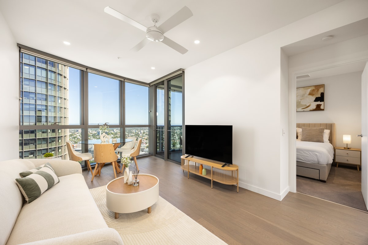 Добро пожаловать в ваш городской оазис! Студия с собственной садовой террасой на крыше с видом на внутренние районы. Наслаждайтесь дизайном открытой планировки с окнами от пола до потолка, мини-кухней, столовой, гостиной и спальней. Идеально подходит для работы или отдыха, йоги или небольших встреч. Есть рабочий стол и большой обеденный стол. Идеальное расположение рядом с Southbank, The Gabba, QPAC, Riverstage, Suncorp Stadium и конференц-центра. Включает 55-дюймовый смарт-телевизор + бесплатный Netflix и бесплатную парковку. Идеальное место для отдыха в городе!