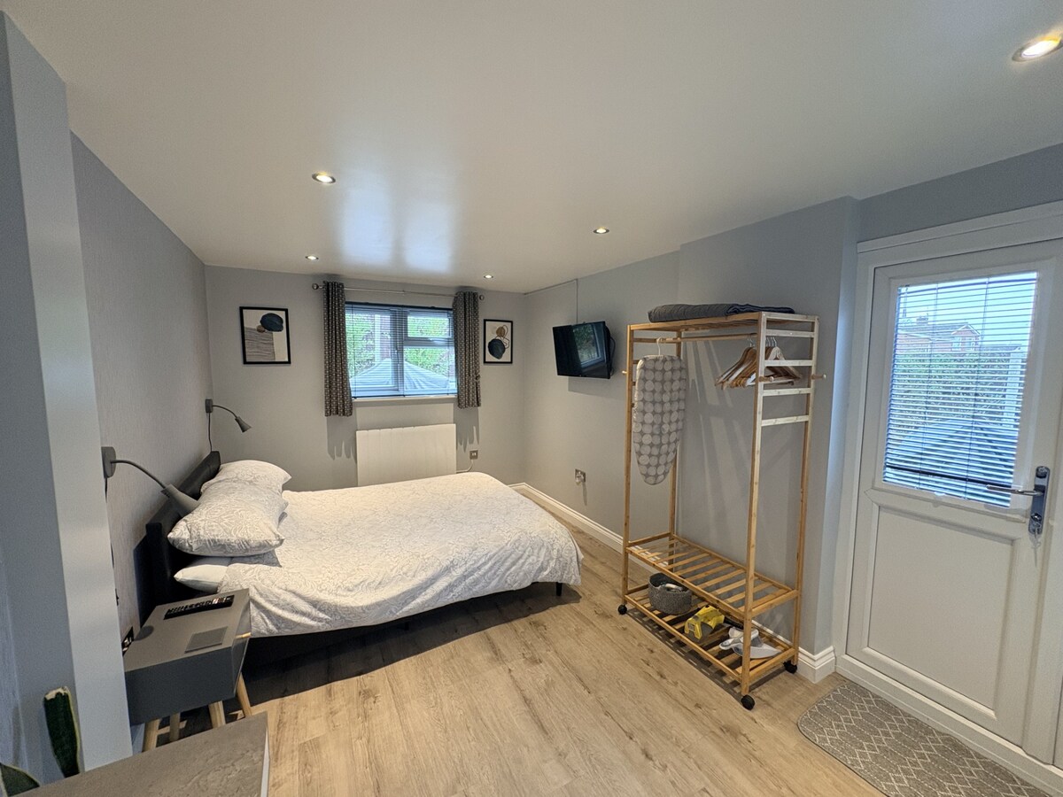 Отдохните в этом современном, тихом жилье, укрывшемся на тихой тупиковой улице в деревне Тертон, всего в 20 минутах езды от Нориджа. Это идеальное место, чтобы познакомиться с Норфолк-Бродс, сельской местностью и побережьем. В садовой комнате есть парковка, не выходящая на улицу, и она находится всего в 5 минутах ходьбы от местных автобусных остановок (Норидж, Беклс и Лоустофт) и деревенского паба. К вашим услугам отдельный вход, удобная двуспальная кровать, принадлежности для приготовления чая и кофе, Smart TV, современная мебель, электрические радиаторы и собственная ванная комната.