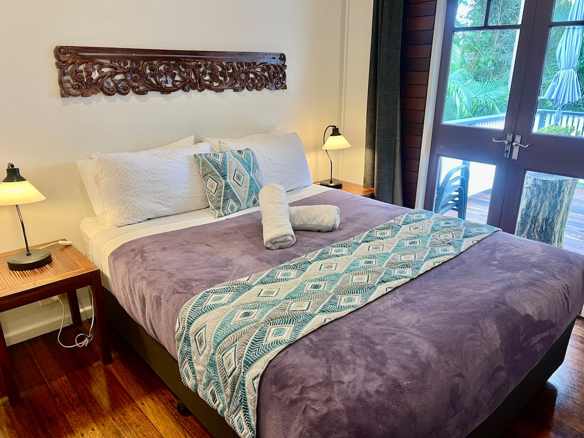 Blackwood - это роскошный и просторный крошечный дом из черного дерева с двумя спальнями, расположенный на более чем 50 акрах сельскохозяйственных угодий с лошадьми и пасущимся скотом, расположенный в глубинке Байрон-Бей. Жилье расположено в идиллическом месте с Бангалоу всего в пяти минутах езды, а живописные пляжи Байрон-Бей, Леннокс-Хед и Баллина - всего в десяти минутах езды. В нескольких минутах ходьбы находится историческая деревня Ньюрибар с магазинами, где можно выпить кофе или поужинать в знаменитом ресторане Harvest Restaurant and Deli.