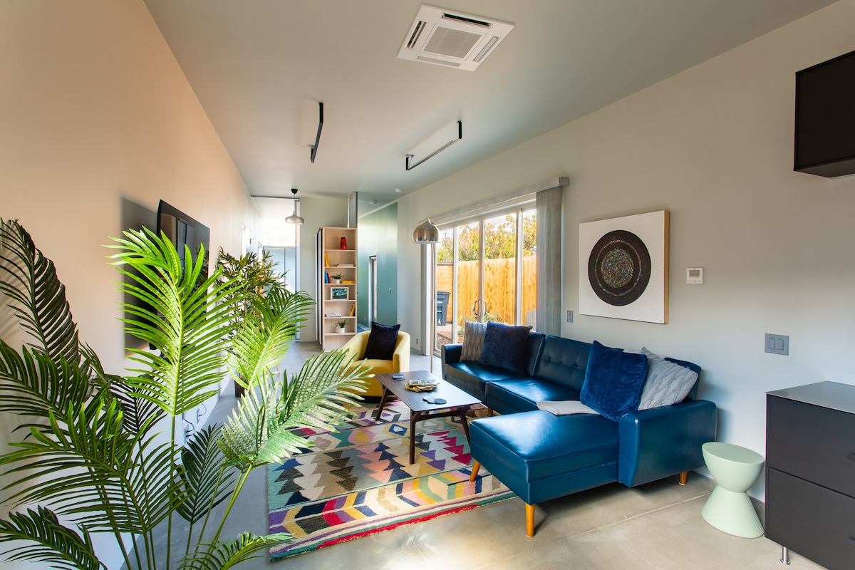 Недавно построенная, веселая и очаровательная касита расположена в тихом историческом районе города. • отдельный вход; • Затененный двор, фруктовые деревья, водоем и сиденья для двоих. • Двуспальная кровать размера King size • Проливная ванна (соль для ванны предоставляется). • Прогуляйтесь до ресторанов, кофеен, микро-пивоварен, исторического шоссе 66, конференц-центра, зоопарка и троп вдоль реки Рио-Гранде. • В нескольких минутах от аэропорта и удобный доступ к автомагистралям, УНМ и Старому городу.