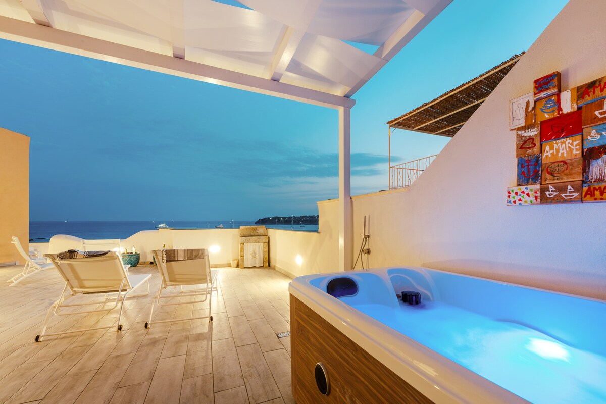 Из квартиры, недавно отремонтированной в современном стиле, открывается захватывающий вид на Неаполитанский залив, от Везувия до Капри. Жилье расположено на последнем этаже исторической виллы с лифтом. Пентхаус состоит из большого жилого пространства с открытой кухней, двух спален с двуспальными кроватями, двух ванных комнат и собственной террасы. Кроме того, гости могут воспользоваться бесплатным частным парковочным местом во дворе, но оно не охраняется.