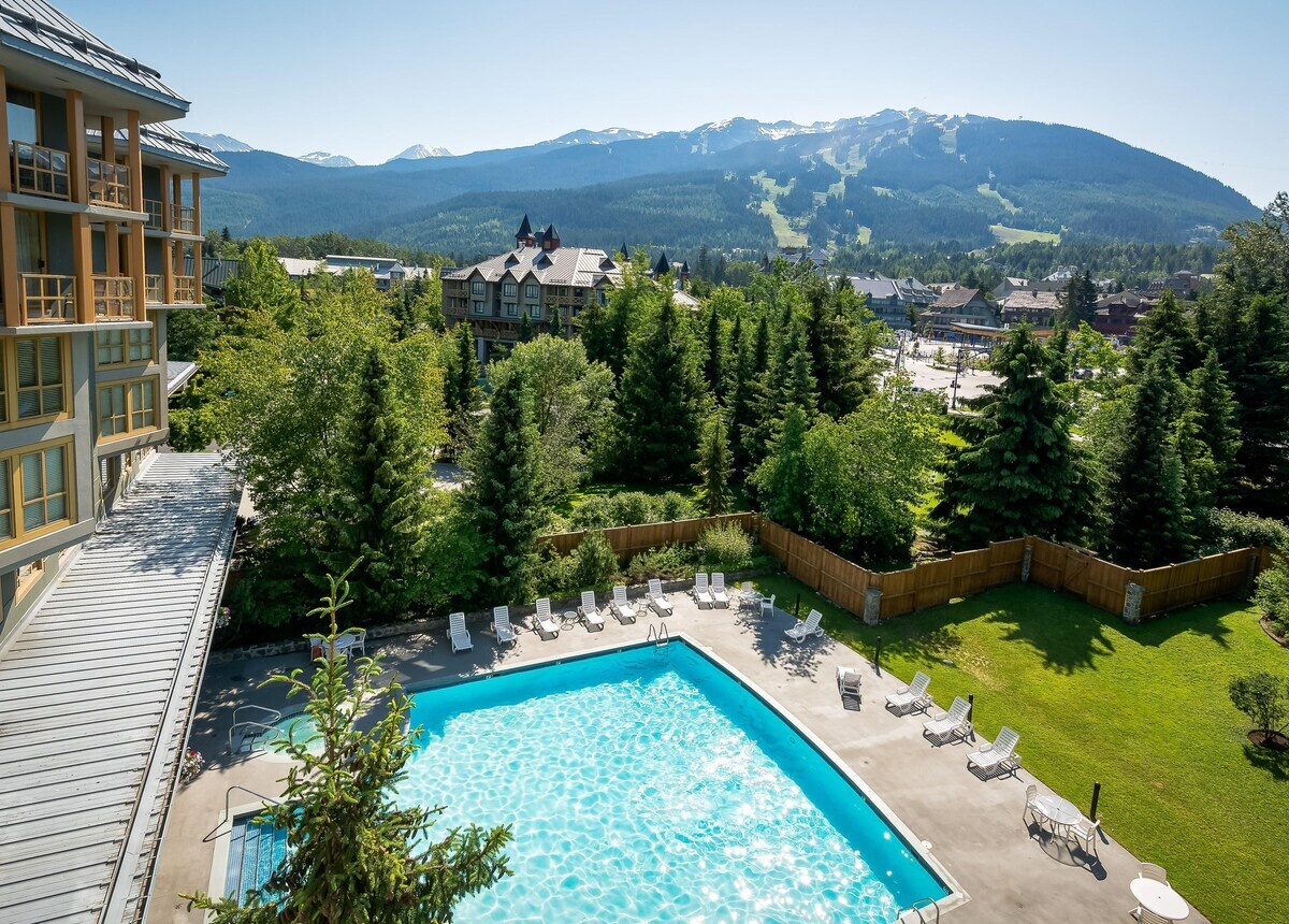 Таунхаус в деревне Уистлер, расположенный на природе, с бассейном