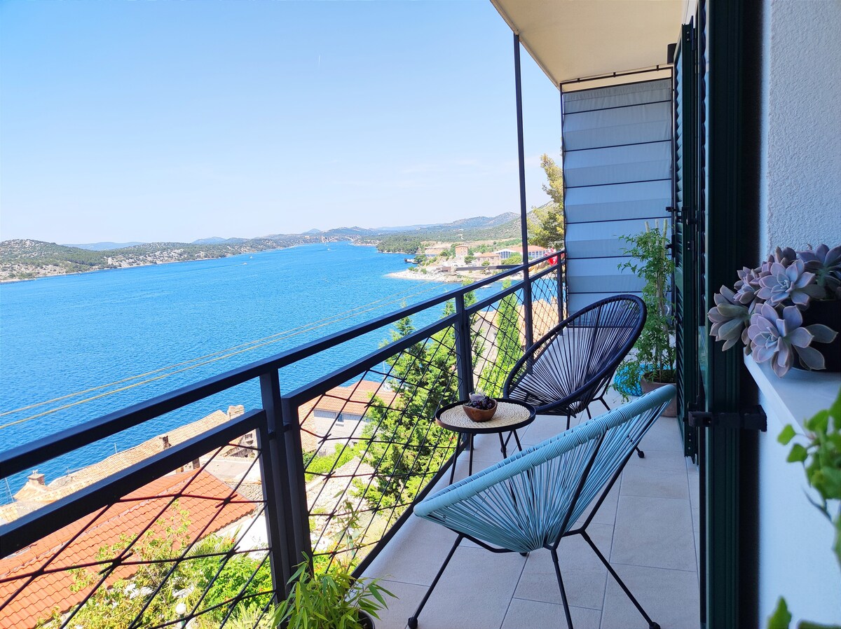 Недавно оборудованная полностью оборудованная квартира с балконом, расположенная на самой высокой вершине старого города Шибеника, чуть ниже крепости Святого Михаила. Уникальность нашего жилья - захватывающий панорамный вид на балкон на побережье Шибеника, собор Святого Иакова, городской пляж Бань (всего в нескольких минутах от квартиры) и окружающие острова. Перед квартирой есть красивый травяной деревенский сад, так что вы можете собирать травы и готовить собственный органический чай или оживить еду;)