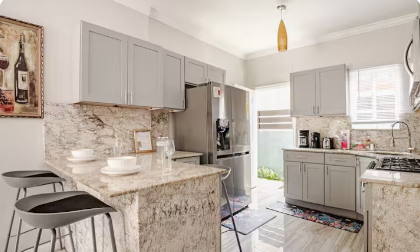 Отдохните в этом стильном карибском ретрите, идеально подходящем для 5 гостей или одиночных путешественников. К услугам гостей высокоскоростной Wi-Fi, кондиционер, стиральная машина/сушилка в блоке, полноценная кухня и все удобства высококлассного дома. Жилье расположено в безопасном районе, всего в 2-10 минутах езды от лучших закусочных, магазинов и достопримечательностей, таких как музей Боба Марли. Для легкого доступа к городу рекомендуется автомобиль. Бесплатная парковка с комфортом, удобством и карибским шармом для незабываемого отдыха!