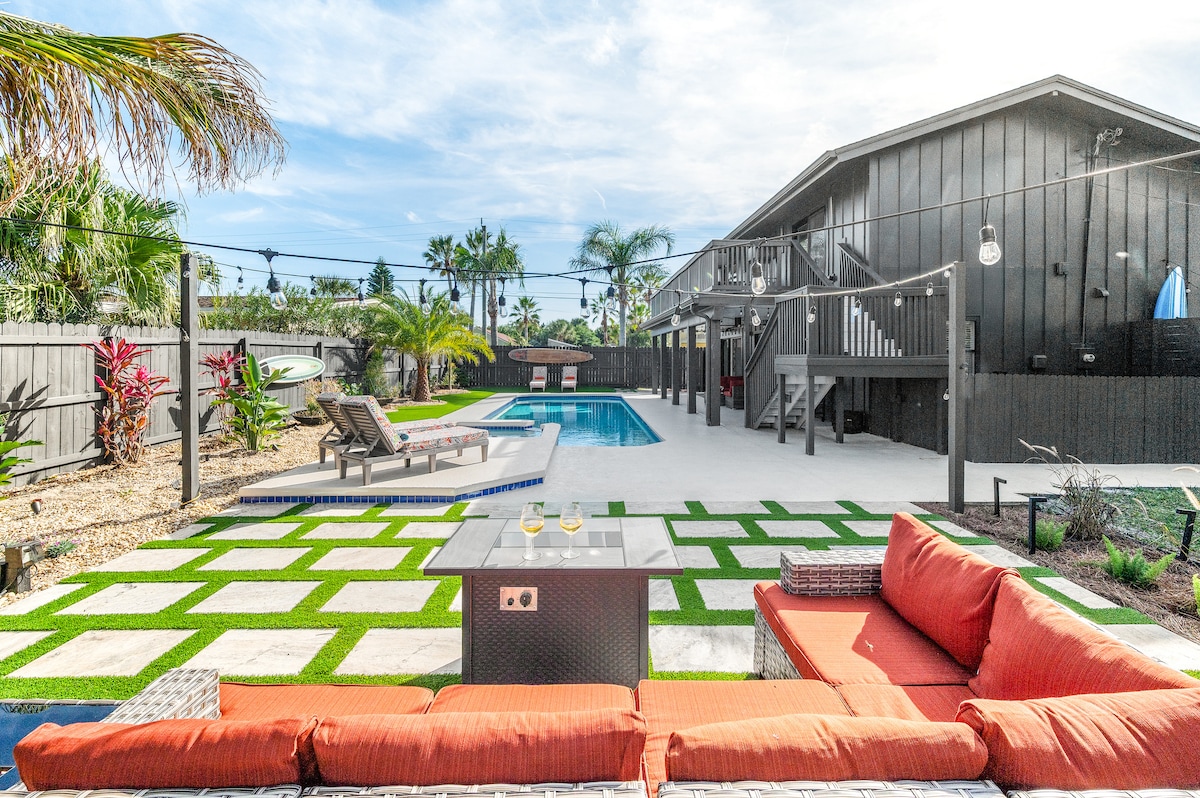 * Построено в 2023 году — роскошная мебель и постельное белье в прибрежном стиле. * Упоминание в журнале Good Housekeeping Mag 2024 года🌟 * 2 люкса с кроватью размера King size (1 на каждом этаже) | 2 спальни с кроватью размера Queen size | 3,5 ванные комнаты. * Частный бассейн с соленой водой и спа/гидромассажная ванна. * Кабинка у бассейна | Кухня на открытом воздухе | Крыльцо * Велосипеды, пляжные игрушки, пляжные стулья * Пышный тропический ландшафт. * 0,2 мили - великолепный тихий пляж. * 5,5 миль — исторический центр Сент-Огастина — старейшего города в США! * 0,2 мили - ресторан Cap's для ужина на закате на воде.