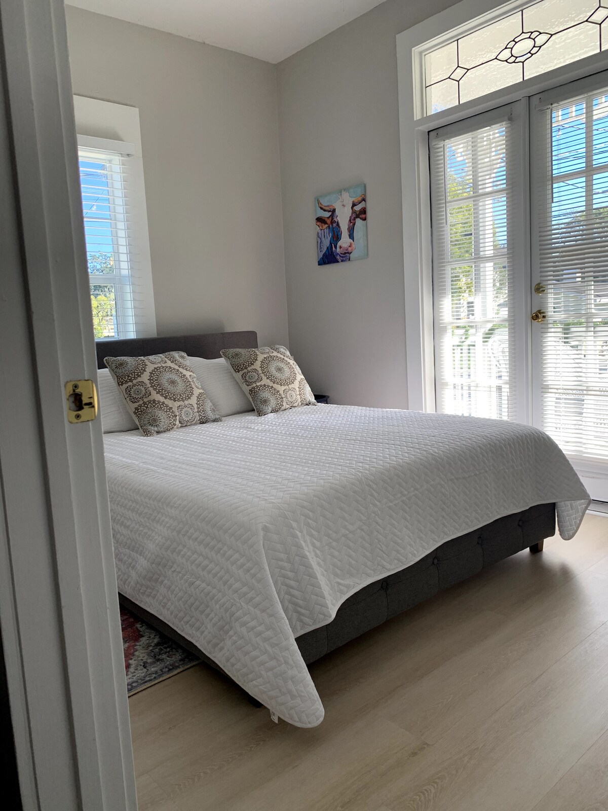 Потрясающе отремонтированный коттедж сочетает в себе современные удобства и винтажный шарм... * 2 главных люкса с кроватями размера Queen size. * Тихий район в пешей доступности, чтобы исследовать старейший город страны. * Ванны на львиных лапах внутри и снаружи (наряду с душем, конечно!) * Большое крыльцо с подвесным шезлонгом. * внеуличная асфальтированная парковка. * Полностью огороженный задний двор, гриль Weber, газовый костер. * Быстрый Wi-Fi и Smart TV. * 2 квартала до Фиш-Кэмп, Айс-Плант, LaNuvelle, остановки троллейбуса. * 10 минут пешком до центра города.