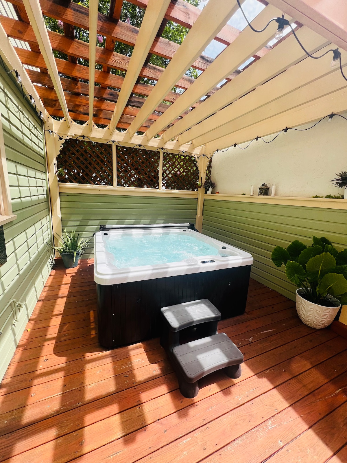 Прекрасный дом для отдыха в центре Сент-Огастина. Это очаровательное убежище предлагает идеальное сочетание современных удобств и очарования, обеспечивая незабываемый отдых. Этот дом с двумя спальнями и одной ванной комнатой предназначен для комфорта и спокойствия. В главной спальне есть большие французские двери, которые выходят на частную террасу с современным декором, а вторая спальня также предлагает доступ к частной террасе с джакузи, создавая одинаково привлекательное пространство.