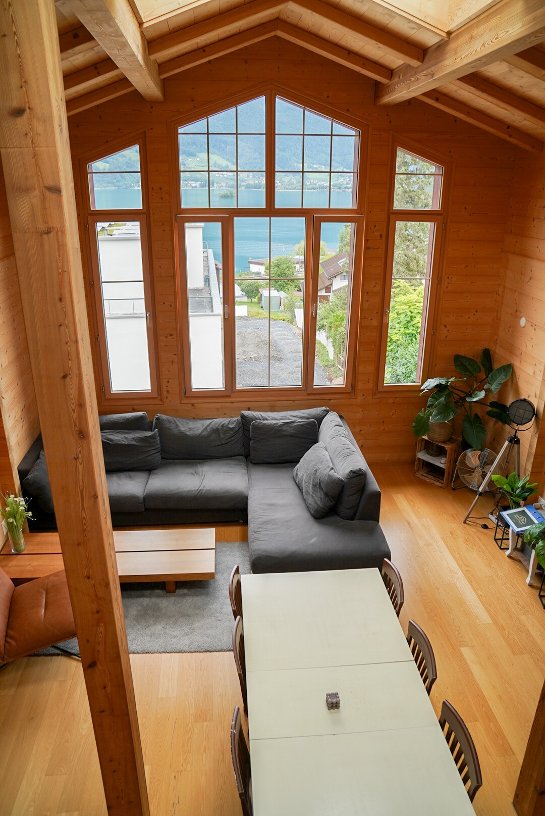 Небольшой лофт расположен на первом этаже величественного дома. Современная и комфортабельная мебель: элегантная ванная комната в черном и латунном цвете, белые стены из известковой штукатурки, дизайнерский бетонный пол с подогревом, много окон, прямой доступ в сад. Залитое светом пространство, спокойствие и сад приглашают вас отдохнуть. Вид на холмы и Альпы заставляет вас жаждать пеших и велосипедных прогулок. До железнодорожного вокзала и деревенской площади с ресторанами и магазином всего несколько шагов (4 минуты).