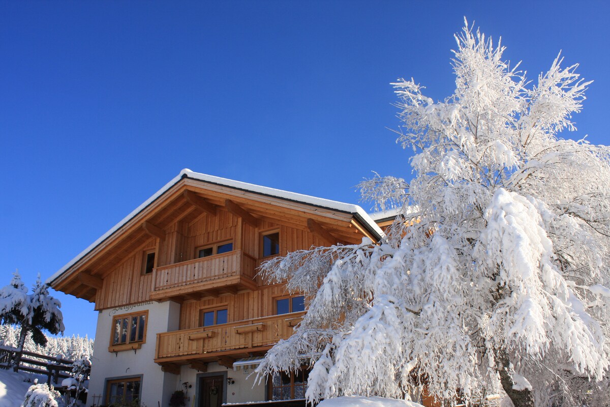 Наш дом расположен в солнечном месте на 1056 м в высоту и имеет прекрасный вид на Bischofsmütze и массив Дахштейн. Зимой и весной: лыжная трасса рядом с домом. До горнолыжного курорта Filzmoos (2 км) с skibus бесплатно. Неподалеку находятся горнолыжные курорты Флахау, Заучензее, Шладминг. С горнолыжного курорта регион является красивым туристическим районом.