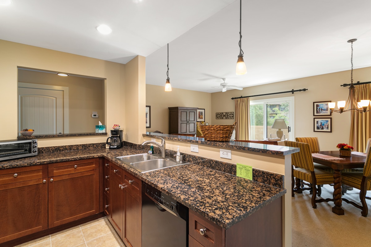 В красивом первозданном кондоминиуме с 1 спальней есть все. Удобная двуспальная кровать размера King size, уединение, ванная комната с римской ванной, стиральная машина/сушилка, полноценная кухня со всей необходимой посудой, два телевизора с плоским экраном, быстрый бесплатный Wi-Fi, собственный балкон с видом на пышные сады с фонтаном. Курорт Laterra может похвастаться множеством удобств прямо за вашим порогом. Бассейн с подогревом, бассейн с водопадом, гидромассажная ванна, теннисные корты, отмеченный наградами гольф и рестораны поблизости!
