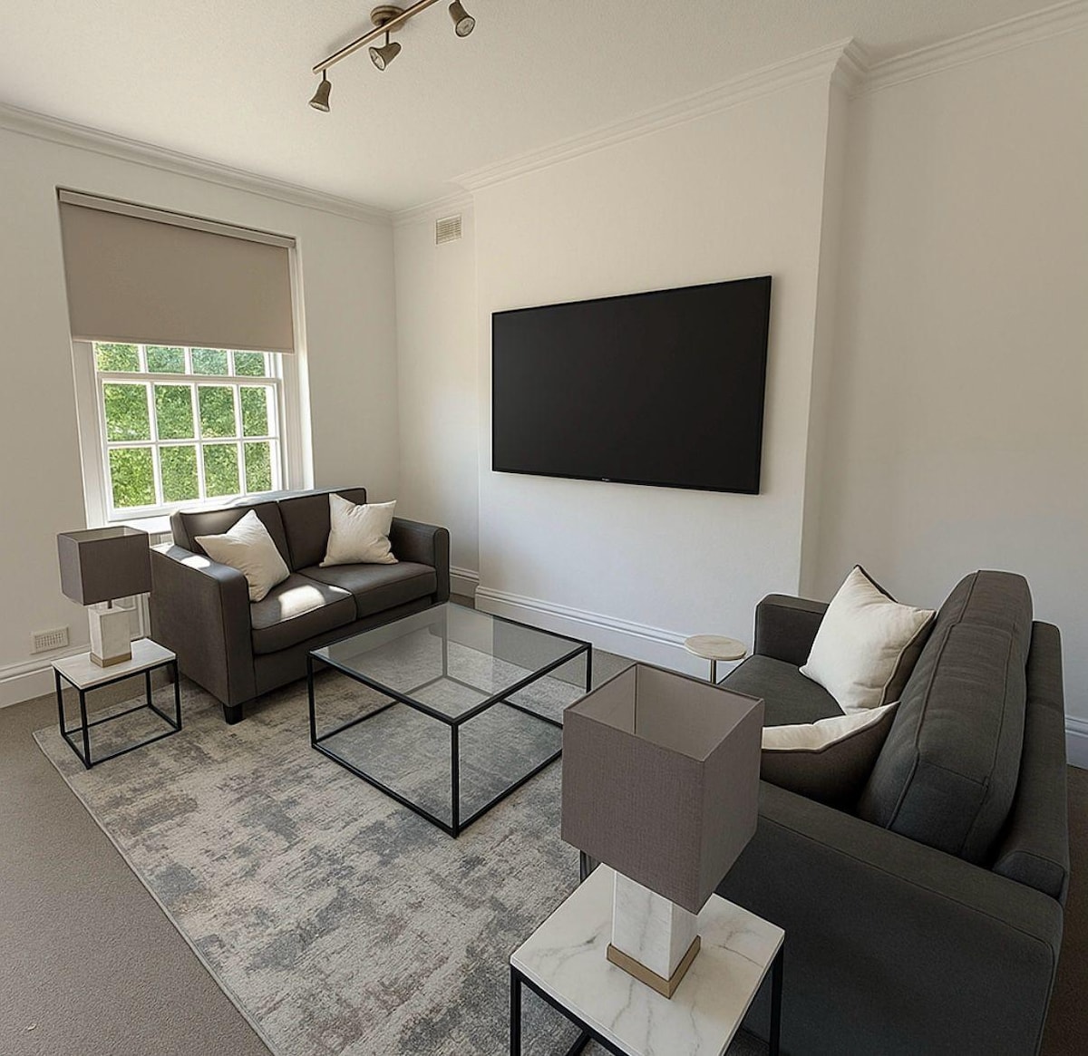 This luxury two bedroom apartment is situated in a sought after central London neighbourhood of St John’s Wood. Set in a prestigious mansion house with an elevator and 24 hour porter, it is very quiet and has been recently redecorated. Regent’s Park, Harley Street, Marylebone Village, Bond Street, Mayfair and Piccadilly are minutes away. The apartment offers a fantastic base for a short or long stay. Housekeeping can be provided on request.