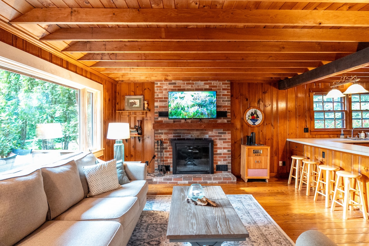 Отдохните в сказочном коттедже с деревянным каркасом, спрятанном в лесах штата Мэн! Вас ждут высокие балки, полы с подогревом, двуспальная кровать размера King size и костер. Выпейте кофе на одной из двух террас, прогуляйтесь по горе Брэдбери (3 минуты езды), посетите магазин Freeport (10 минут езды) или пообедайте в Портленде (20 минут езды), а затем вернитесь в свое уютное убежище под звездами. Полностью оборудованная кухня, сводчатые потолки, полы с подогревом, частная подъездная дорога, костровище и спокойный вид на лес делают его идеальным круглогодичным отдыхом.