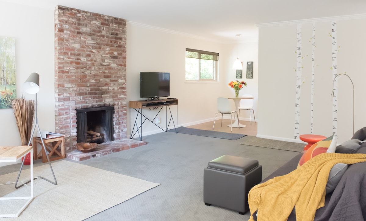Наслаждайтесь стильным отдыхом в этом центральном месте! Эта светлая современная жемчужина середины века со вкусом отремонтирована высококлассной скандинавской мебелью (диван BoConcept, ковер, настенные блоки) и европейским дубовым полом. ** В июле 2023 года установлен мини-сплит кондиционер.** Здесь есть просторная общая зона для семейного отдыха, полная кухня, 3 кровати размера Queen size, 2 ванные комнаты и быстрый Wi-Fi (>200 Мбит/с). Go0gle/Stanford находится в 5-10минутах езды, а местные продуктовые/кофейные магазины (Peet 's) находятся в нескольких минутах ходьбы.