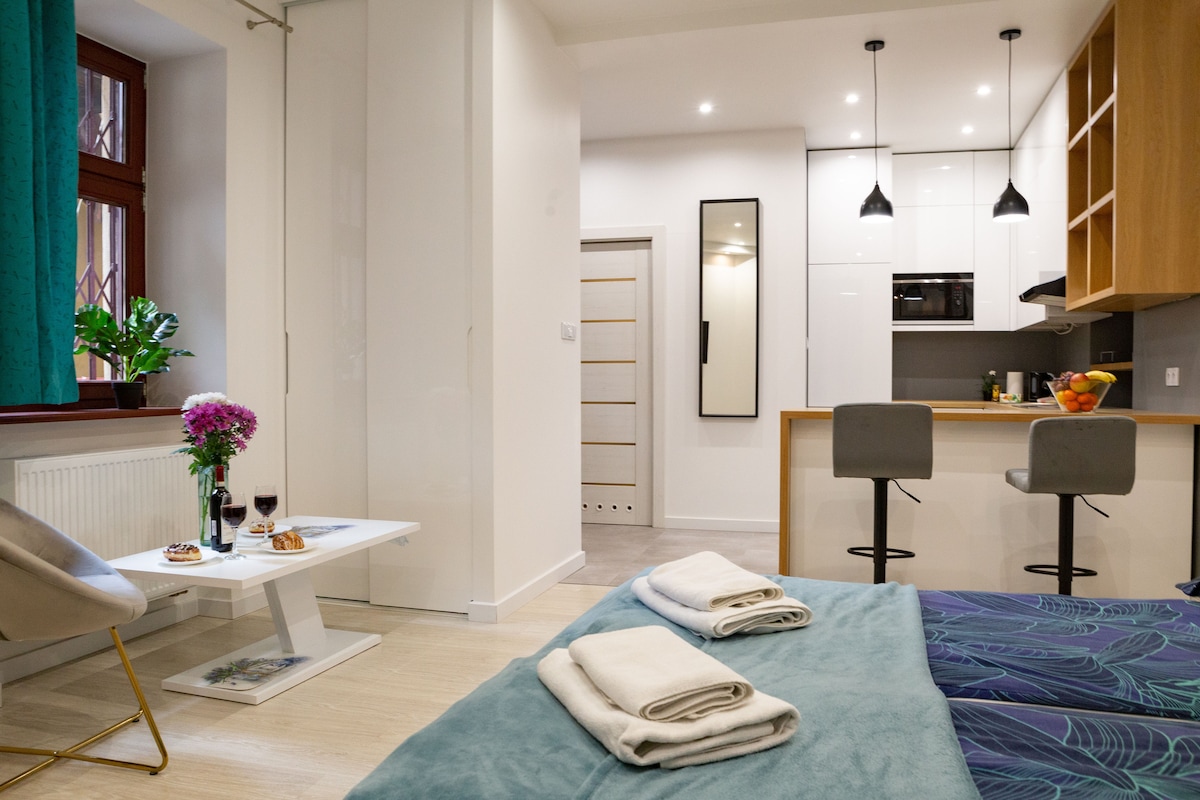 Откройте для себя очарование этой стильной квартиры с одной спальней и кондиционером, расположенной на одной из самых оживленных улиц Кракова, прямо в центре Старого города. Тщательно отремонтированный и оформленный местным художником, он сочетает в себе историческое очарование с современным комфортом. Несмотря на центральное расположение, внутри очень тихо и спокойно — идеально для отдыха после насыщенного экскурсиями дня. Это уникальное место гарантирует незабываемый отдых в волшебном Кракове.