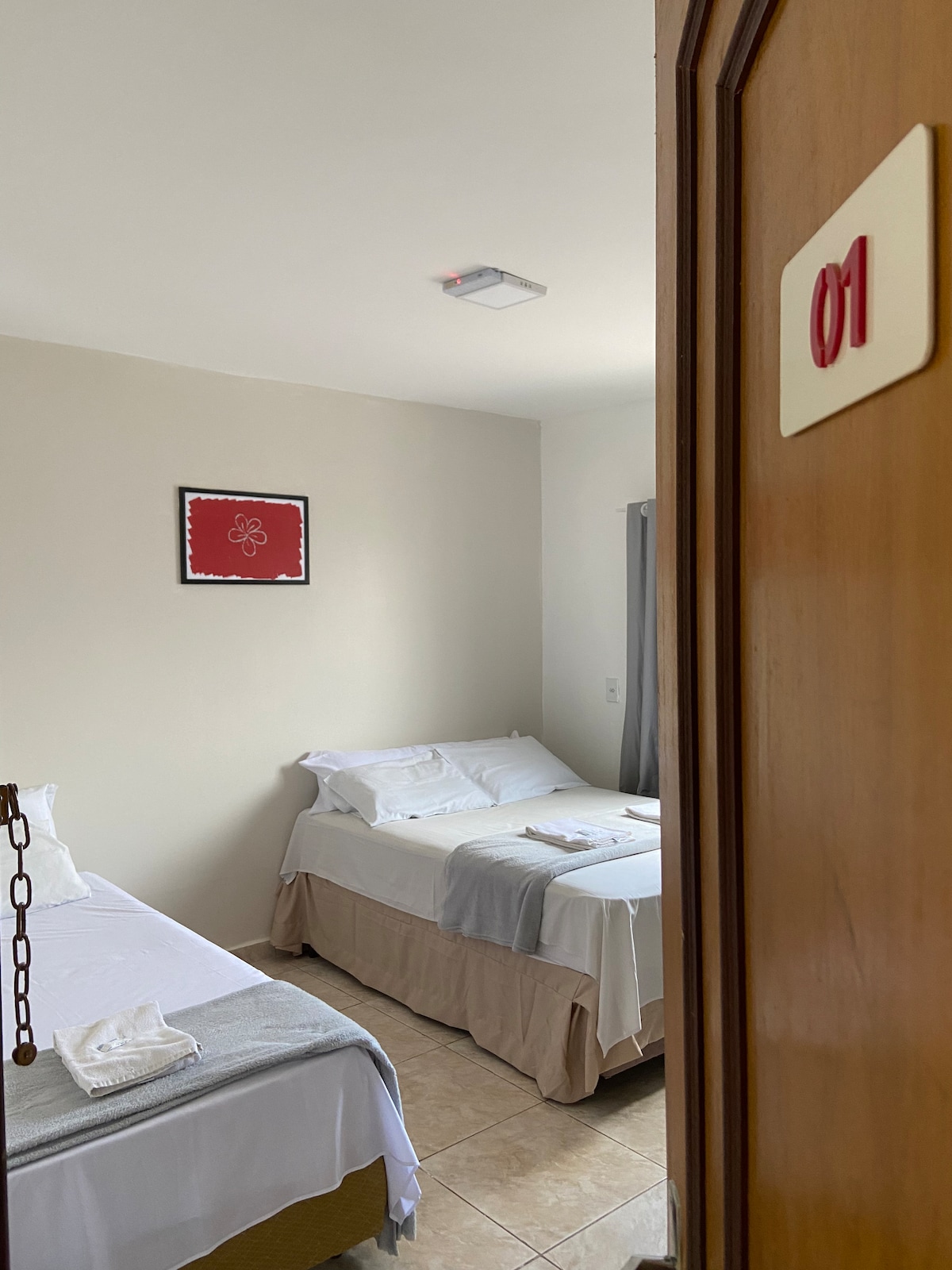 Ficamos na Pousada das Marias 🧡🦜 Café da manhã incluso. A Petit Suíte é equipada com uma Smart TV, Wi-Fi gratuito, ar-condicionado e frigobar. O banheiro, embora pequeno, possui um chuveiro tipo ducha que proporciona uma experiência diferente em um espaço otimizado. Um local para pessoas sem frescura. Roupas de cama e banho estão inclusos.