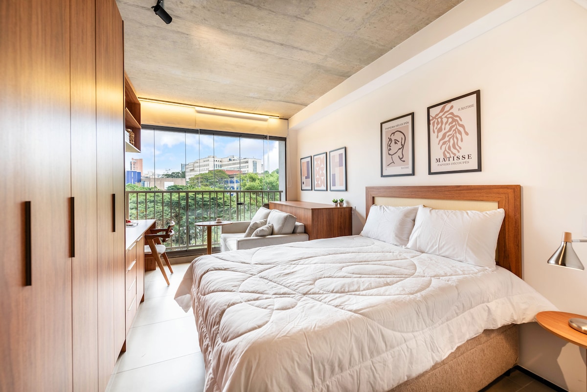 Студия с высококачественным декором, идеально подходит для краткосрочного или длительного пребывания. Жилье рассчитано на комфортное размещение до 2 человек. Жилье расположено в престижном районе Моэма, в окружении зеленых улиц и широкого выбора ресторанов с интернациональной кухней. Легкий доступ к аптекам, пекарням и рынкам, а также близость к парку Ибирапуэра и всего в 500 метрах от станции Моэма. Высокоскоростной Интернет (500 Мбит/с) для комфортной работы из дома.