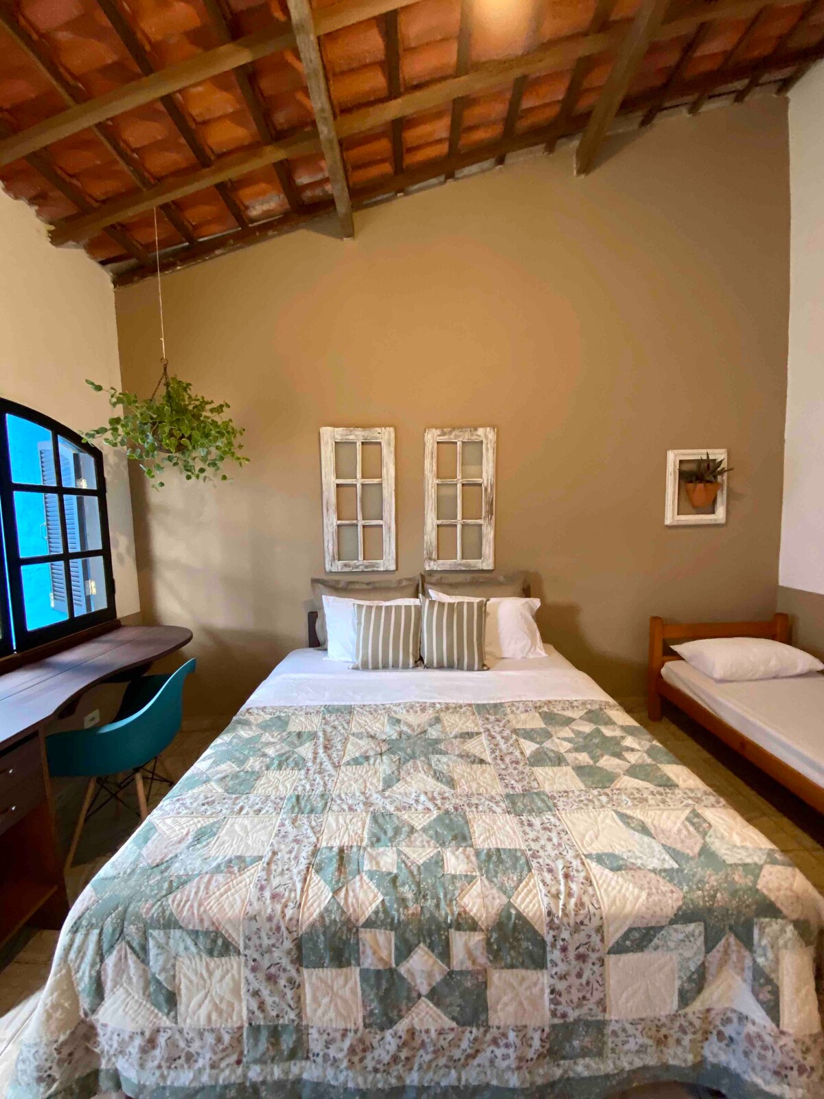 Наш участок, Mocambo do Jacaré, находится в 4,5 км от Сан-Франциско Ксавье в долине Санта-Барбара, образуя 23 000 м² зеленой зоны с лесом, садами, множеством птиц и рекой с природными бассейнами, чтобы освежиться летом. В доме, где мы живем, интегрирована квартира с отдельным доступом и частной зоной. К услугам гостей смежный номер с кухней и большая ванная комната. К услугам гостей телевизор, много света и кресло для чтения с видом. Джакаре-Мокамбо: много открытий без вида.