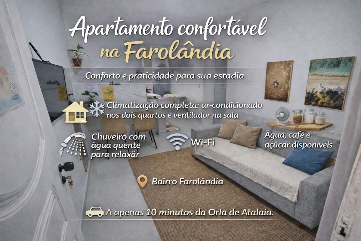 Остановитесь в привилегированном месте на Orla de Atalaia, в 2 минутах ходьбы от пляжа. Меблированная и оборудованная квартира с фантастическим бассейном на «крыше», готова встретить вас. Полюбуйтесь удивительным видом, откуда можно созерцать от центра Аракажу, реки Сержипи, военно-морского маяка до пляжа художников. Все это у моря, рядом с основными и туристическими услугами, рынком, аптеками, барами, ресторанами и многим другим. Буду рад приветствовать вас. Aracajue-se!