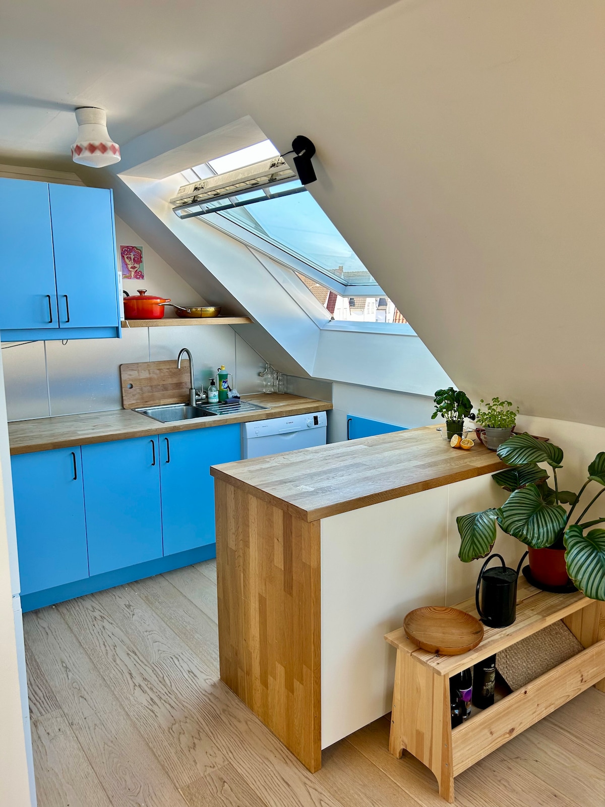 Квартира-студия имеет особую уютную атмосферу. В доме есть две спальные ниши и кухня со всеми удобствами. Пять окон, включая три световых люка, дают много естественного света. Во всех есть жалюзи. Эта квартира подходит для пар или небольших компаний друзей. На территории работает супербыстрый Wi-Fi и бесплатная парковка. Он расположен в самом центре города, вы можете легко дойти пешком до центра города.