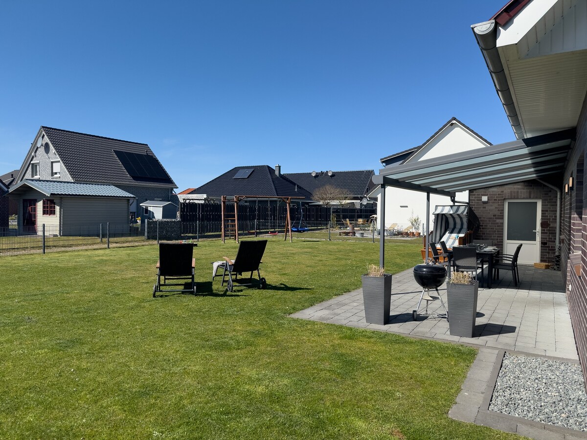 Добро пожаловать в наш дом у моря! Милый таунхаус в тихом поселении недалеко от дамбы и Ваттового моря. Она светлая и уютная. Отопление осуществляется с помощью органического инфракрасного обогревателя, и в целом мы стараемся быть экологически чистыми и устойчивыми. Через большое панорамное окно в гостиной, вы можете увидеть дамбу и полюбоваться широким видом на поле. Кажется, все удивительно замедляется.