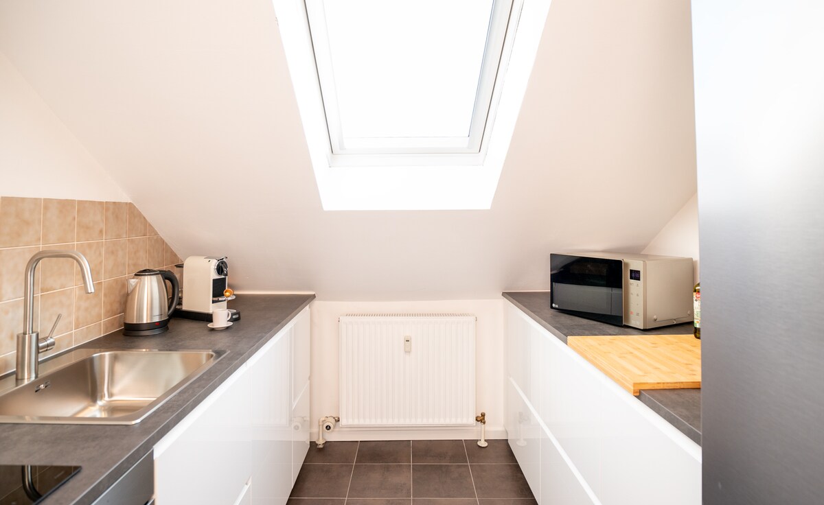 Ванная комната (на цокольном этаже) с ванной/душем, туалетом и большой раковиной (высота потолка 1,85см). Кухня с духовкой, варочной панелью, варочной панелью, посудомоечной машиной,посудой, посудой, тостером, чайником, кофемашиной и микроволновой печью. Гостиная с большим диваном, телевизором (спутниковым телевидением), большим обеденным столом Спальня с двуспальной кроватью 1,8 х 2,0 м, комодом и поручнем для одежды, прикроватным столиком с лампой Коридор с обувным шкафом и большими зеркалами Запираемая квартира для арендованной квартиры на первом этаже, бесплатный Wi-Fi.