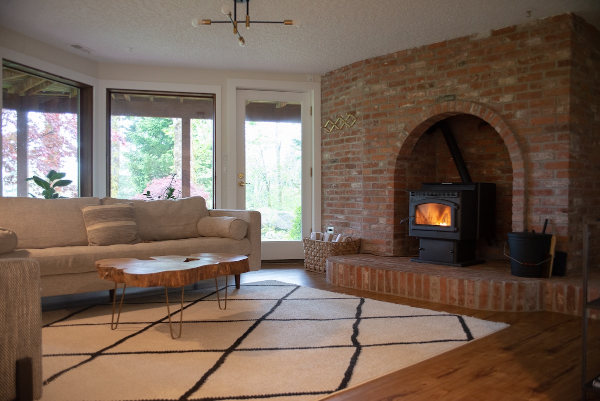 Red Bluff Cabin | Gorge Views Near Skamania Lodge & Maple Leaf Events Private cabin on 5 acres in Stevenson, WA with stunning Cascade Mountain views from the front porch. Features a King bed, full kitchen, separate bedroom, comfortable living room, 50” Smart TV, heat & A/C, and Keurig coffee maker. Located next to Maple Leaf Events—ideal for wedding guests—and just 2 miles to Skamania Lodge, downtown Stevenson, and Columbia River Gorge adventures.