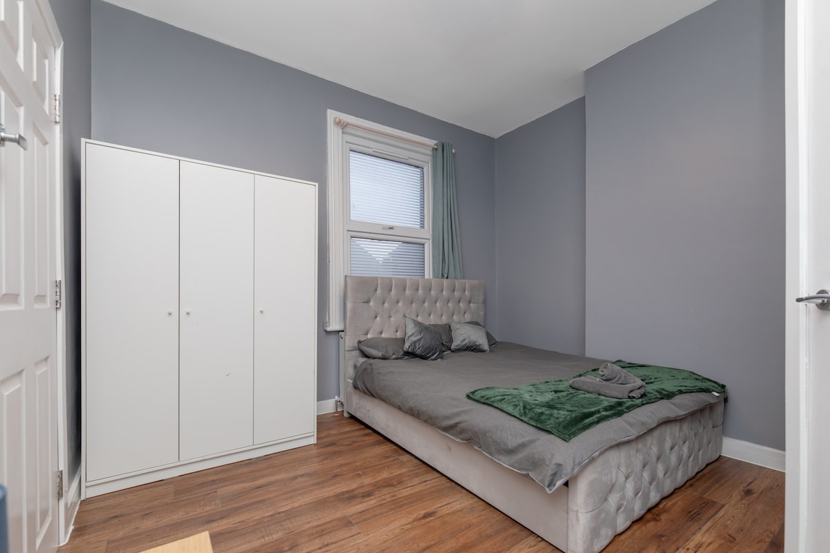 Находится недалеко от Норт-Роуд, примерно в миле от центра города. магазины, выноски и большой парк поблизости. Есть спальня с двуспальной кроватью, 2-я спальня с односпальной кроватью + выдвижная кровать с подпружиненным матрасом или дорожная кроватка. На кухне есть стол с 4 стульями и 4 складными стульями. Встроенная духовка и варочная панель, микроволновая печь и стиральная машина/сушилка. Центральное отопление. Отремонтировано и заново подключено, как "навестить семью" 2-й дом. Мы надеемся, что вам понравится так же, как нам.