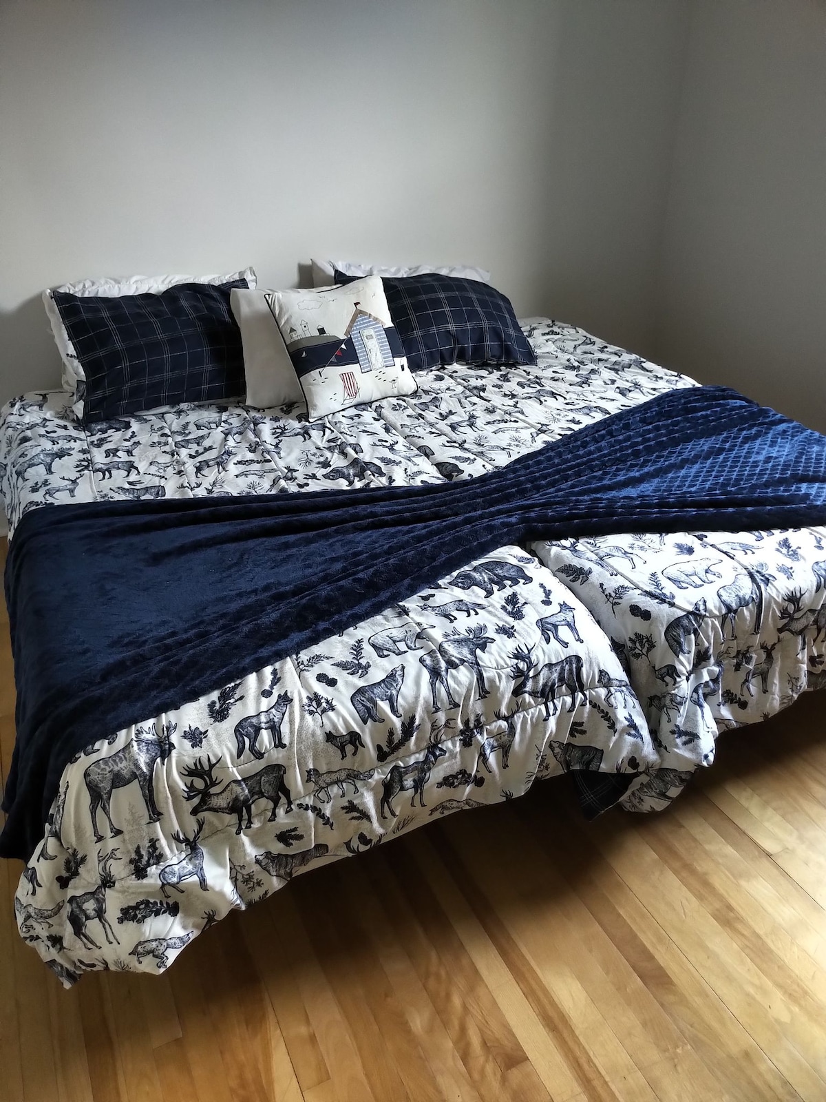 Люкс in law расположен на нижнем этаже большого дома в Орлеане в восточной части Оттавы. В люксе есть спальня (двуспальная кровать) с письменным столом и телевизором ; гостиная с камином и диваном размером с односпальную кровать на 1 человека и телевизором. Полностью оборудованная кухня. Прачечная находится на том же уровне и отдельная ванная комната с туалетом только для гостей апартаментов. Прекрасный задний двор. Гости могут пользоваться тренажерным залом, оборудованным беговой дорожкой, велотренажером, эллиптическим весом и т. д.