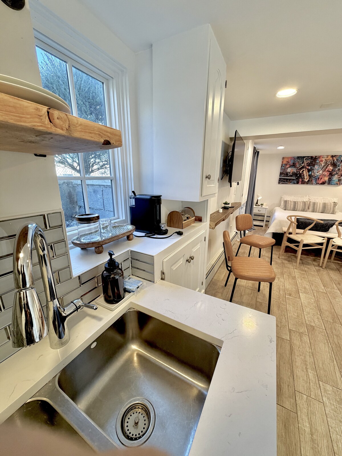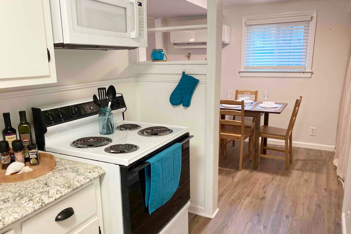 The Boathouse - это отдельная квартира-студия с одной спальней, расположенная за нашим домом в центре исторического центра Милфорда. Через отдельный вход вы найдете продуманно меблированную спальню (двуспальную кровать размера Queen size и выдвижной диван), столовую, полностью оборудованную кухню и ванную комнату. Он идеально подходит для пар/небольшой семьи, ищущей незабываемый отдых на пляже. Прогулка, прокат велосипедов/каяков, шопинг, ужин, наслаждение искусством, музыкой или день на пляже... наш типичный приморский город Новой Англии обязательно очарует вас!