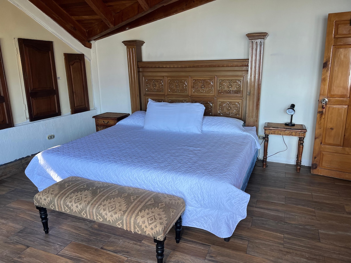 Отдохните в нашей уютной ванной комнате высокого класса с кроватью размера Queen size, изготовленной местными мастерами, и современной техникой. Выйдите на улицу, чтобы полюбоваться потрясающим видом на озеро Атитлан, пышные сады и величественные горы, создающие умиротворенное убежище для полного расслабления. Насладитесь едой на общей кухне на открытом воздухе прямо перед комнатой, предлагающей идеальную обстановку, чтобы насладиться захватывающими пейзажами. Наслаждайтесь частным доступом к нашему бассейну, сауне, джакузи и частному причалу на протяжении всего вашего пребывания!